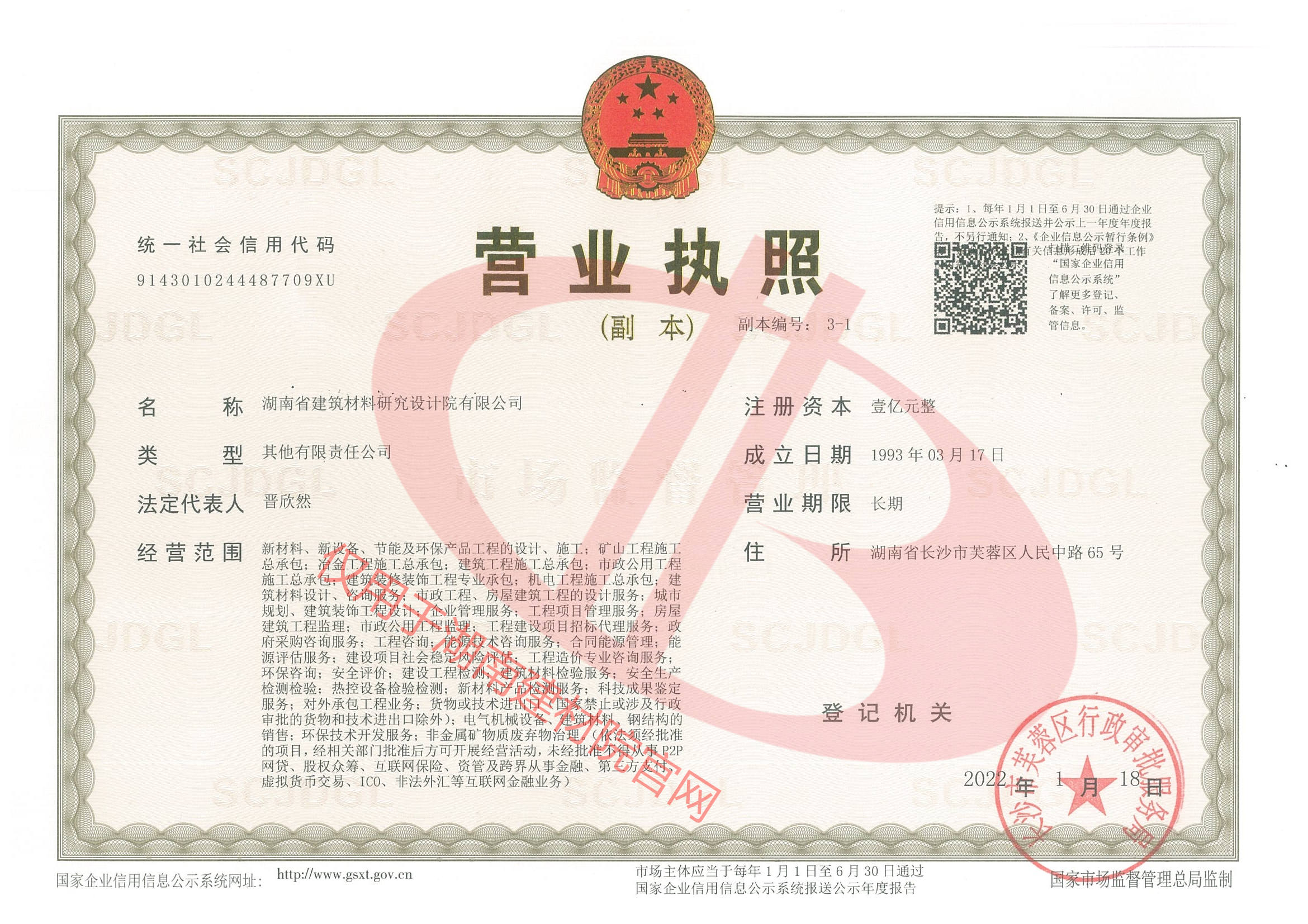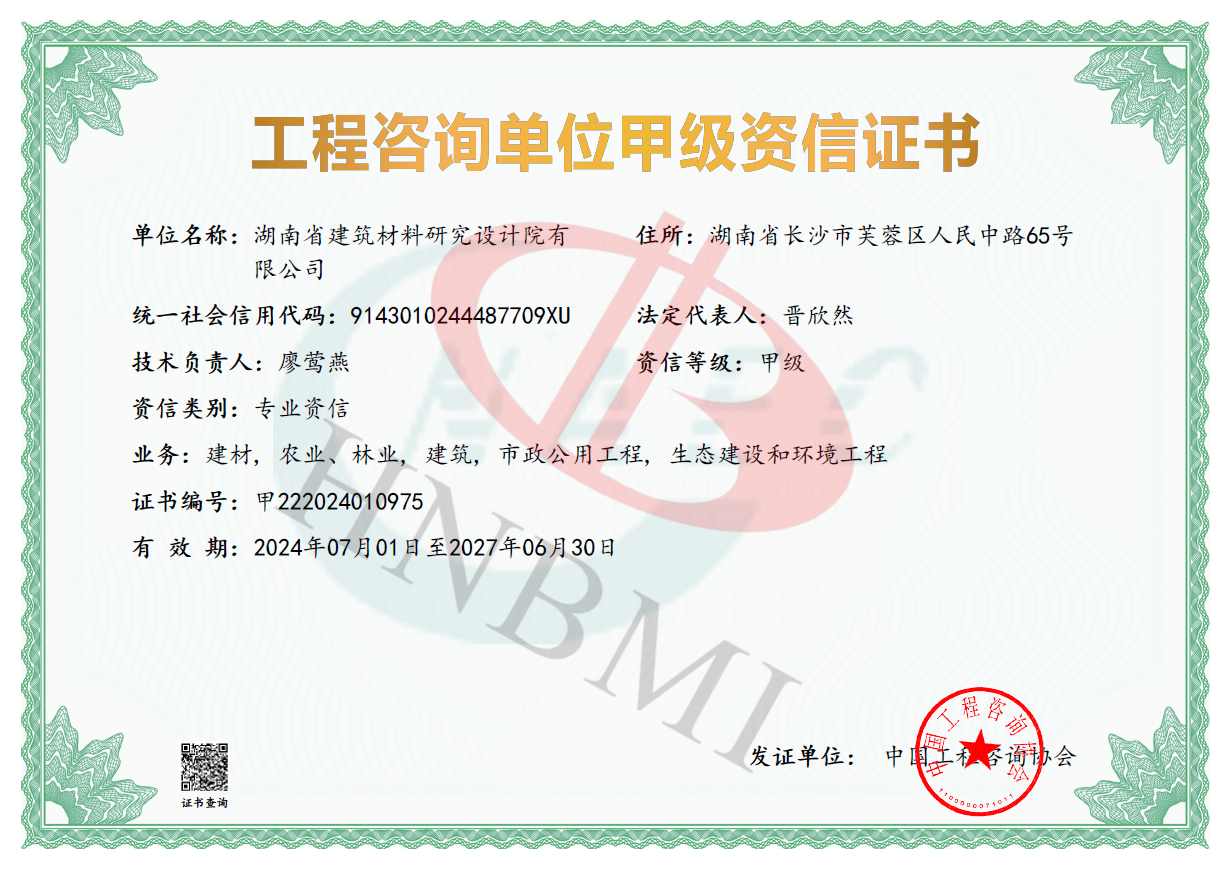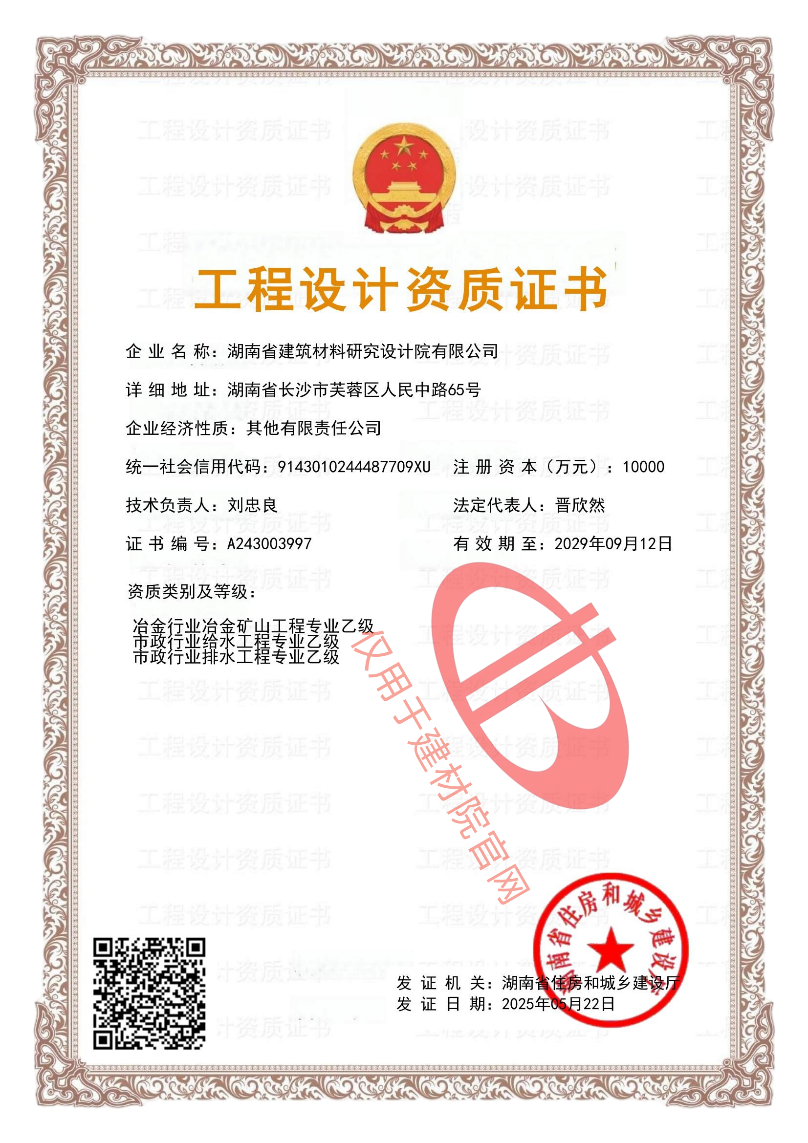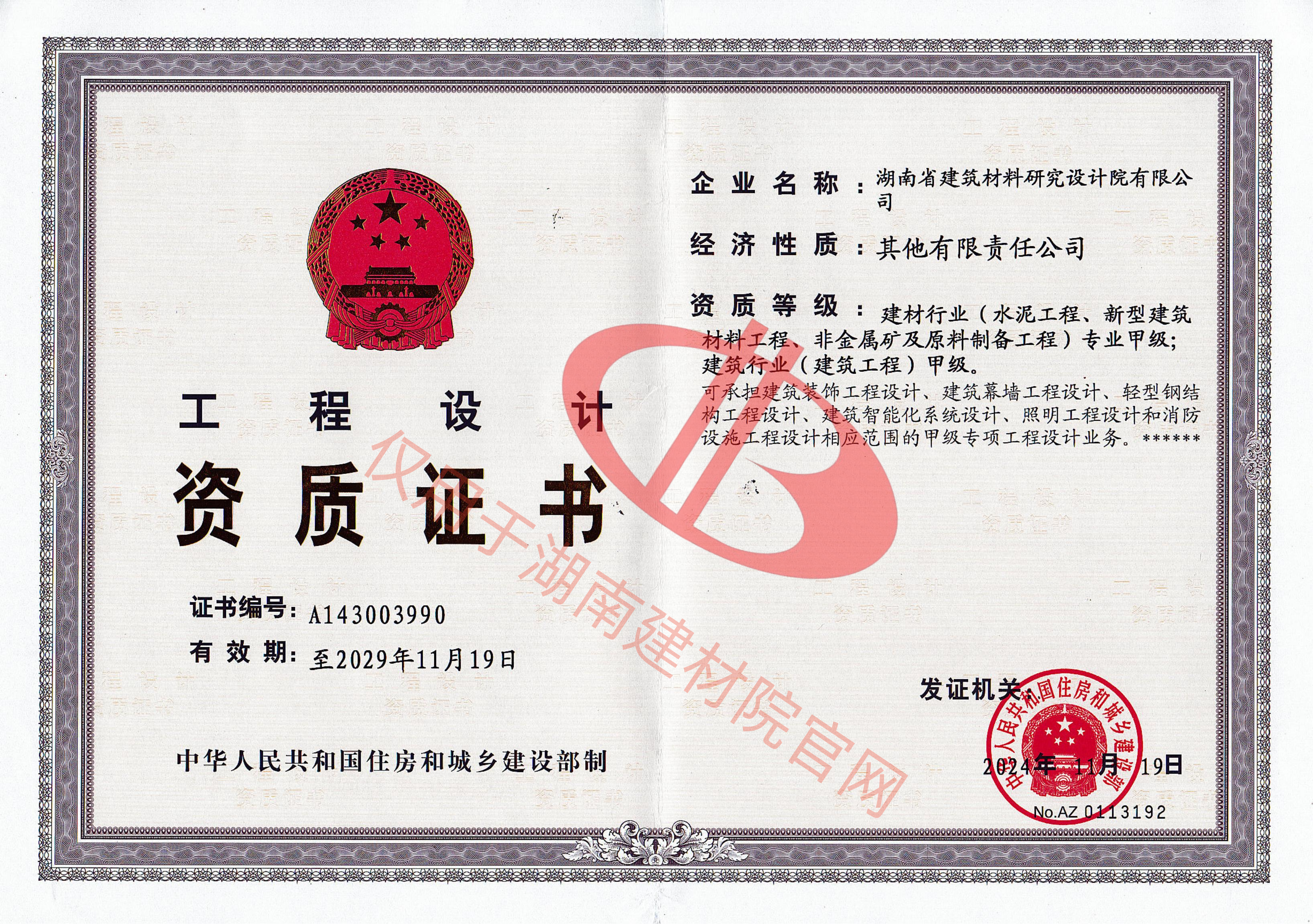 湖南省建筑材料研究設(shè)計(jì)院有限公司的前身為湖南省建筑材料研究設(shè)計(jì)院,成立于1958年,是1993年全國首批榮獲國家建材行業(yè)設(shè)計(jì)、工程總承包甲級資質(zhì)的四個科研設(shè)計(jì)單位之一。